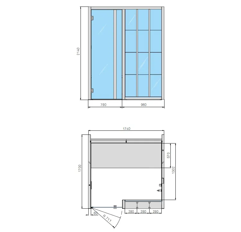 Хаммам Effegibi Yoku H Shelf 174x170h214, пристенная, осина термообработанная/calacatta gold extra YO 40 11 0004