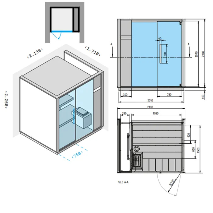 Сауна для ниши Effegibi One S R.H. 214x171xh226, отделка Soft Sand, LO 50 01 0009