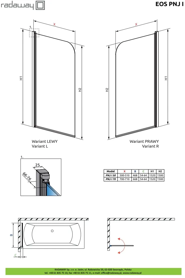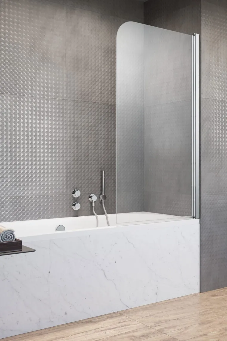 Одностворчатая шторка для ванны Eos PNJ — створка поворачивается внутрь и наружу ванны.