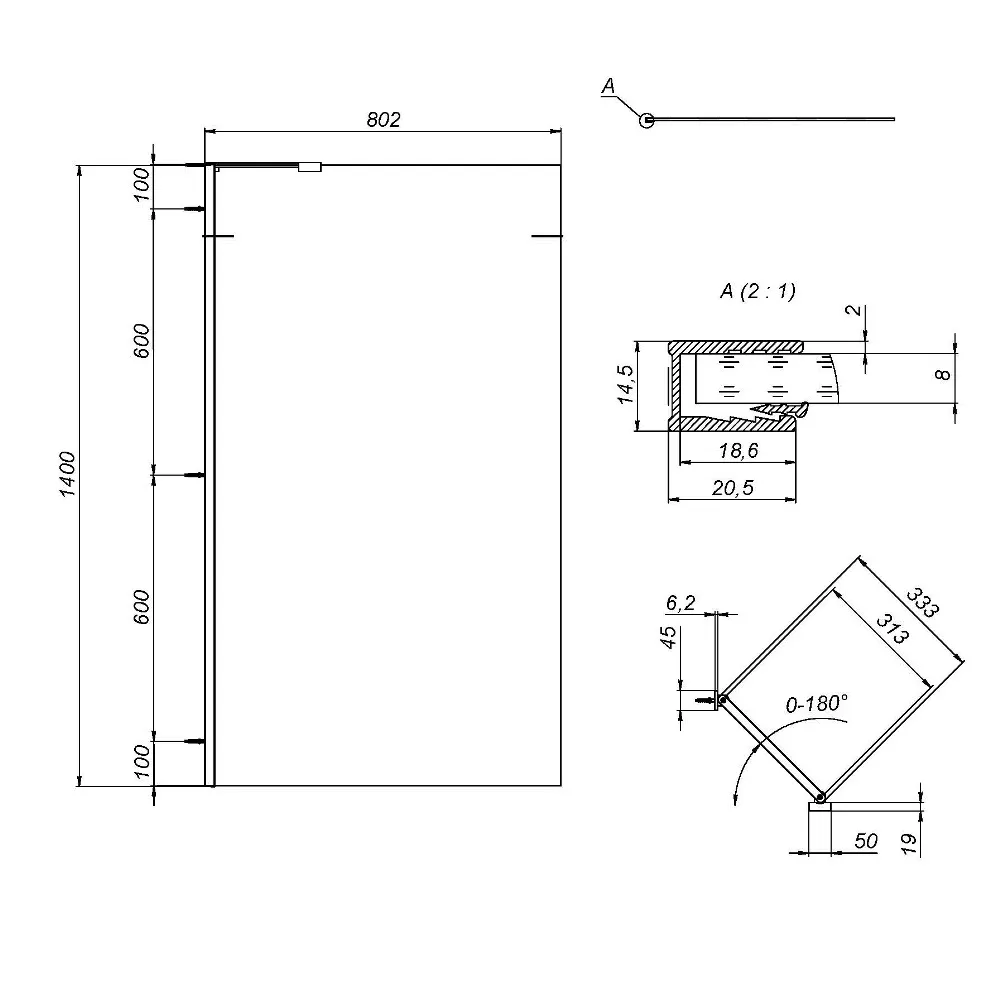 - Цвет профиля: хром, матовый
