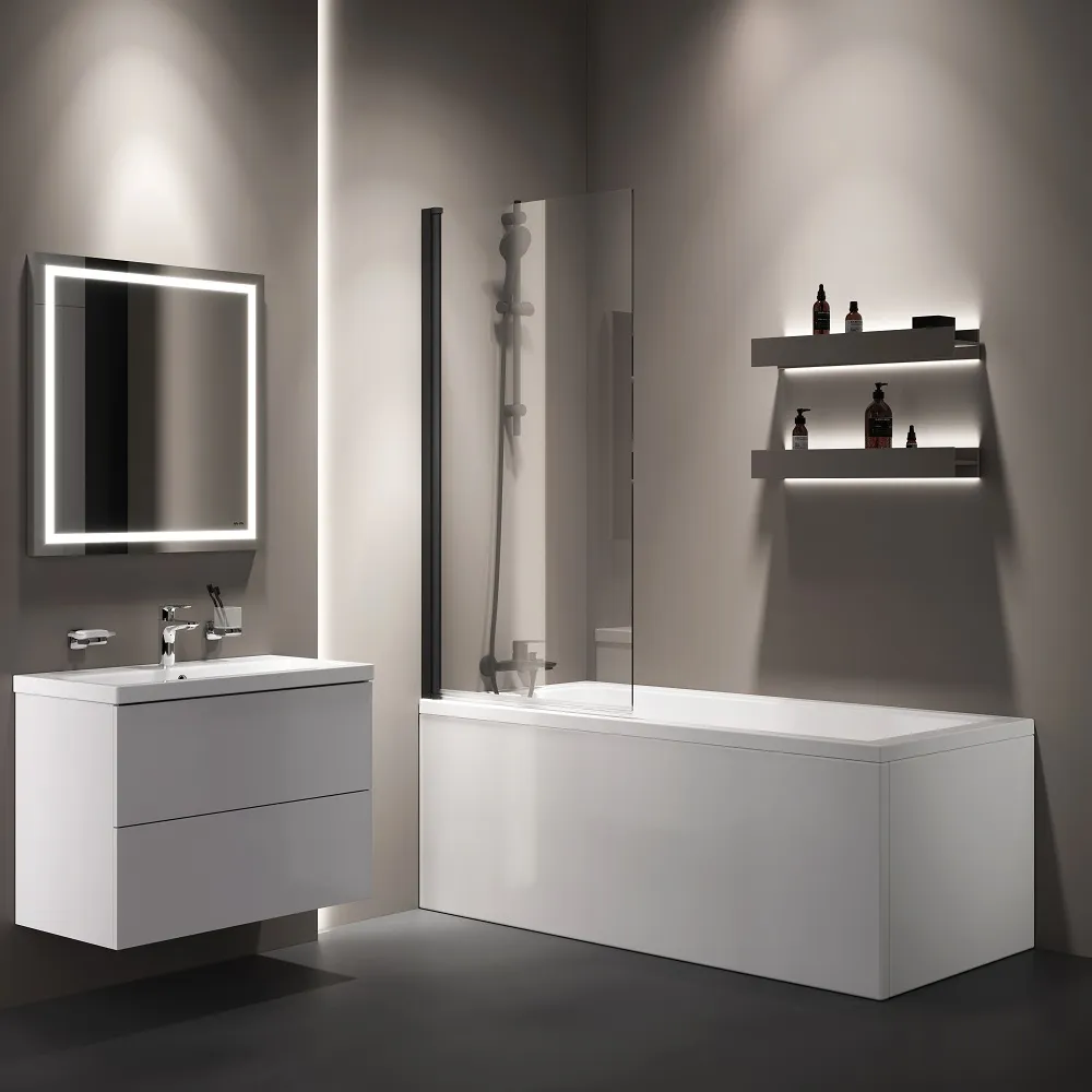 Шторка на борт ванны Gem выполнена в соответствующем всей коллекции дизайне: чистые грани четкие формы и безупречный стиль.