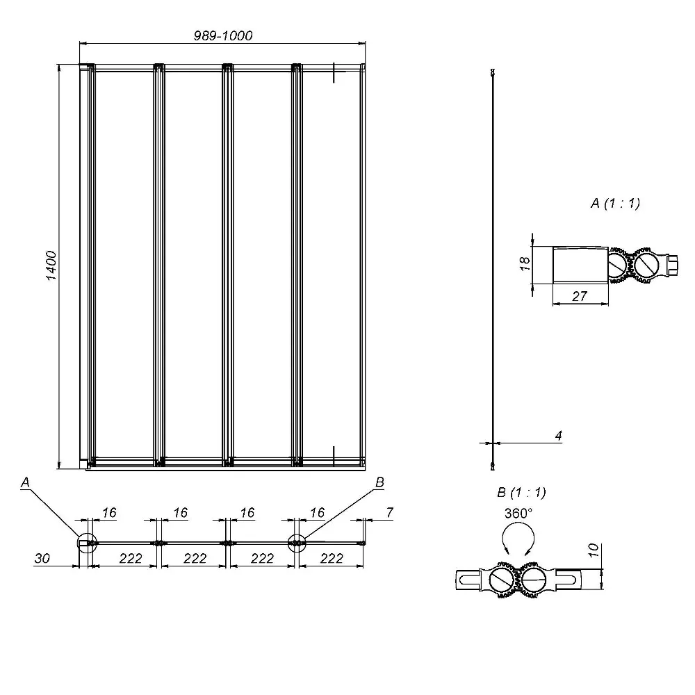 - Цвет профиля: хром, матовый