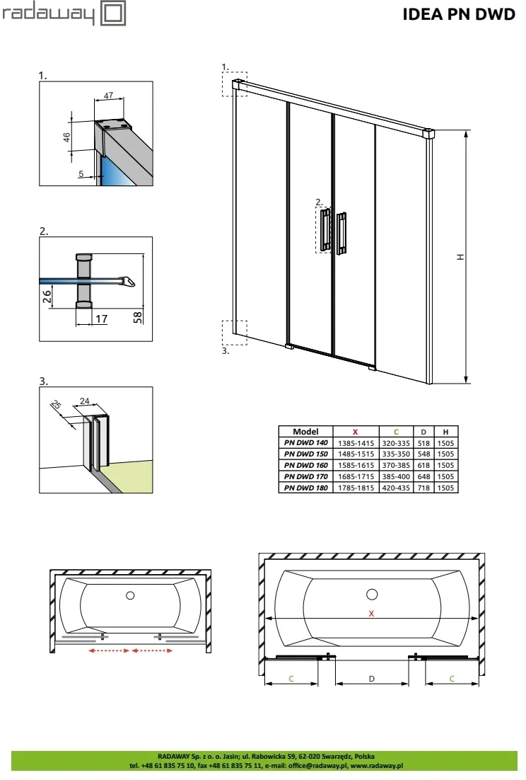 Idea PN DWD — двустворчатая раздвижная шторка на ванну