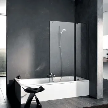 Шторка на ванну Kermi Pega 109-111.5хh150см, крепление справа, черный soft, стекло прозрачное, PE DTR 11015.AK черный soft