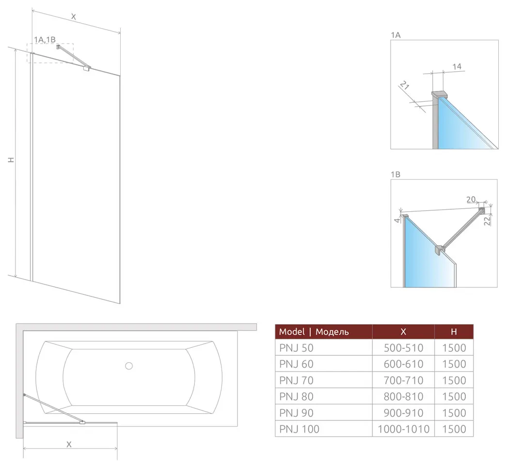 Шторка Modo New Black PNJ неподвижная шторка для ванны.