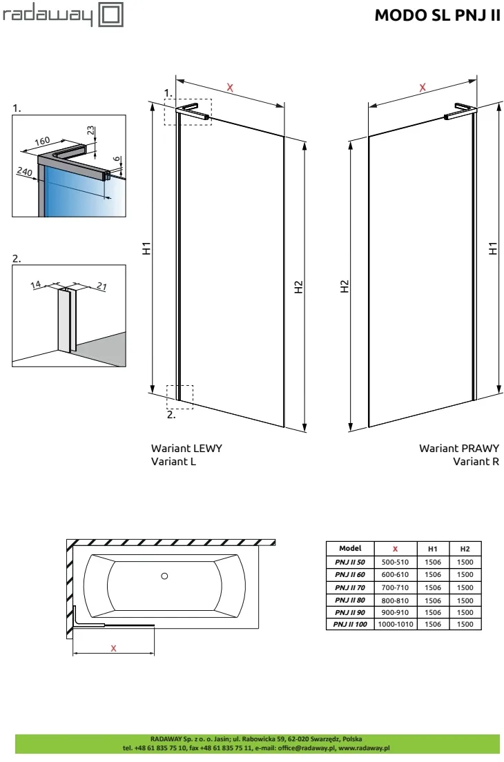 Шторка Modo New PNJ неподвижная шторка для ванны.