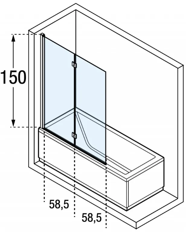 Шторка на ванну Novellini Young 120x151,6см, правая DX, стекло прозрачное, профиль хром, Y21BSV120D-1K