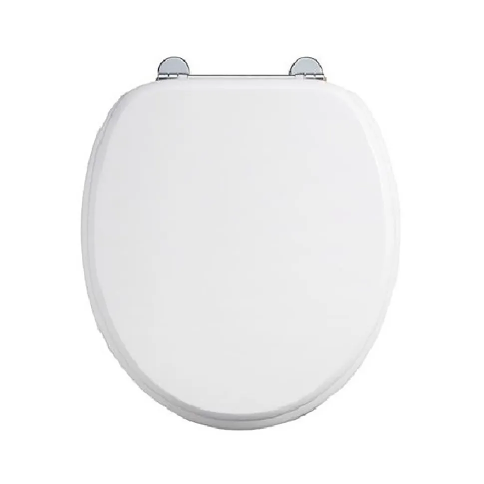 Белое сиденье станет идеальным дополнением для любой модели унитаза фирмы Burlington. Устройство надежно крепится с помощью хромированных петлей.