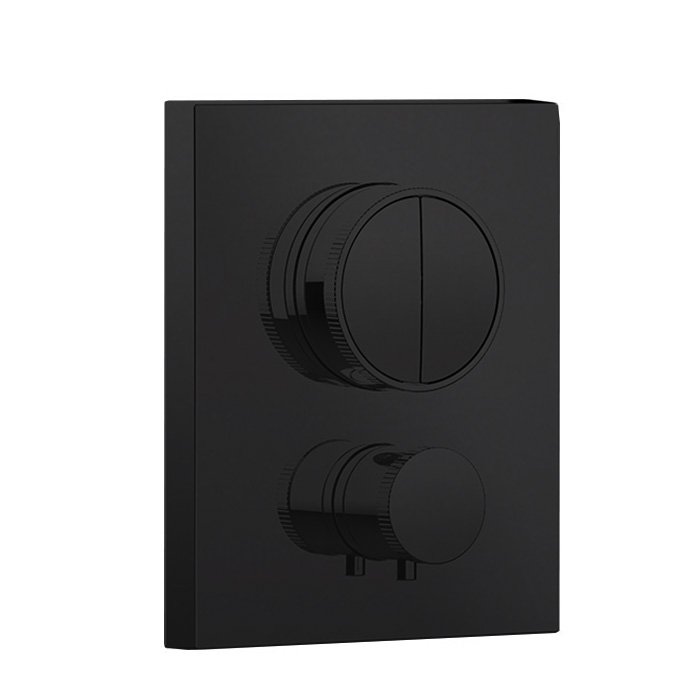 Внешняя часть встраиваемого термостатического смесителя с кнопочным управлением Almar для 2-х потребителей, черный матовый E176682.MB