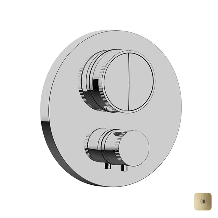 Внешняя часть встраиваемого термостатического смесителя с кнопочным управлением Almar для 2-х потребителей, золото pvd E176632.GO