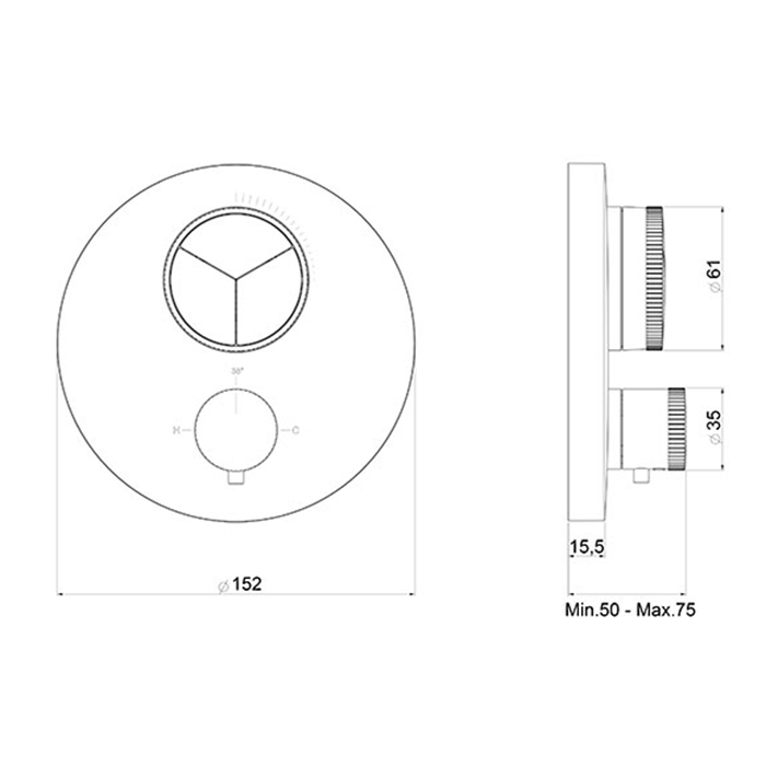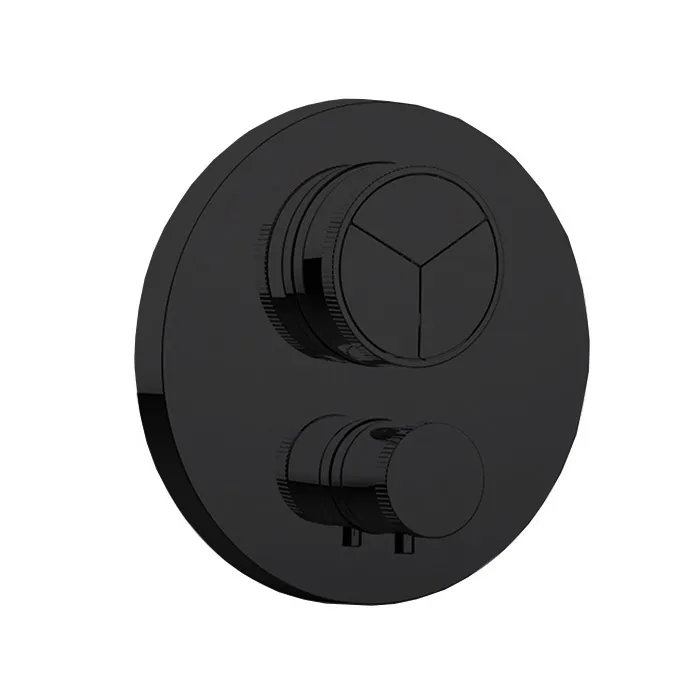 Внешняя часть встраиваемого термостатического смесителя с кнопочным управлением Almar для 3-х потребителей, черный матовый E176633.MB