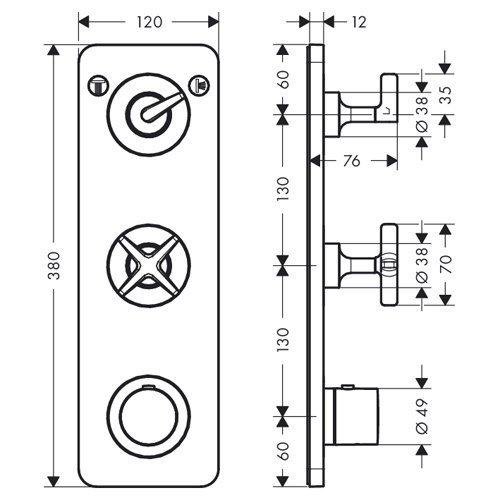 Смеситель для ванны Axor Citterio E 36703000 с термостатом хром