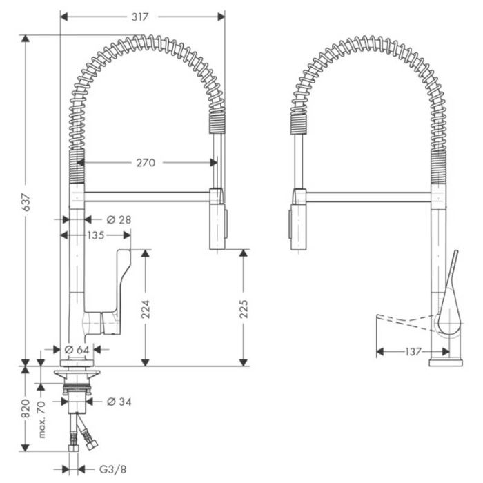 Смеситель для кухни поворотный с душем, излив 27*h63.7, хром