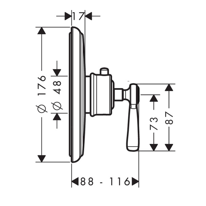 Термостат 43 л/мин, с рычаговой рукояткой, СМ, внешняя часть, d17.6*P.11.6,, хром