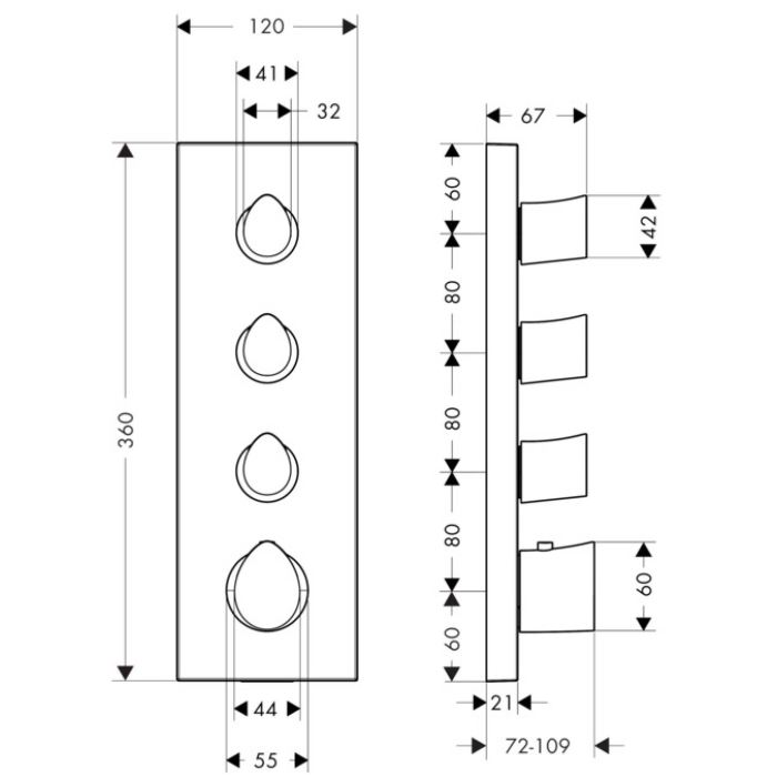 Axor Starck Organic Термостатический модуль 360/120 для скрытой установки, внешняя часть, цвет: хром