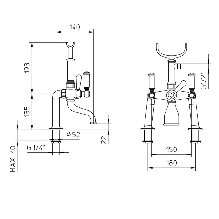 Bossini Liberty Смеситель на борт ванной, на 2 отв., с ручным душем, цвет: античная бронза Z001106.0