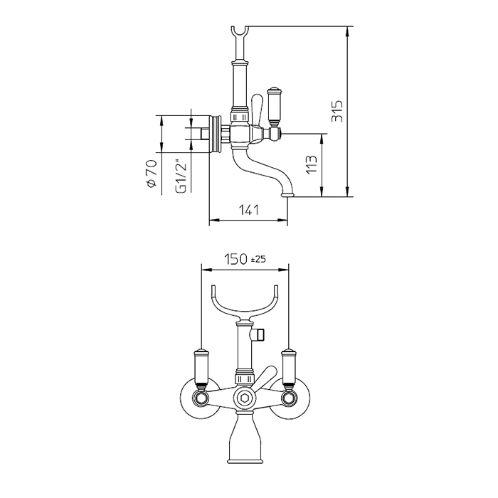Bossini Liberty Смеситель наружный для ванной с переключателем, лейка LIBERTYцвет:GOM, шланг из лату