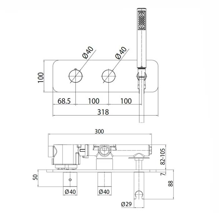 Bossini Oki Комплект: Термостат высокой пропускной способности с девиатором на 2 выхода, ручной душ
