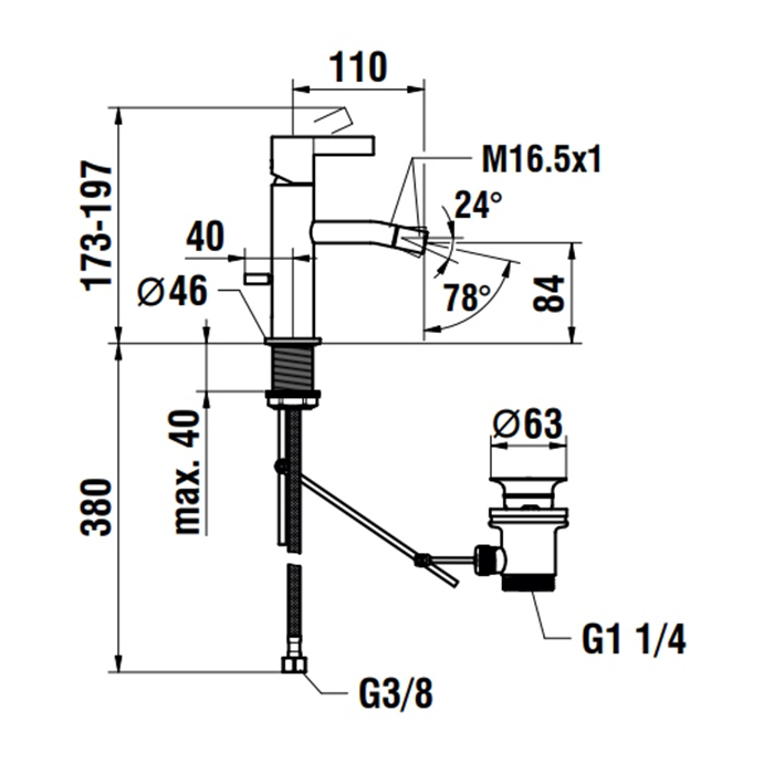 Laufen Kartell Смеситель для биде, на 1 отв, с донным клапаном, излив 110 мм, цвет: хром
