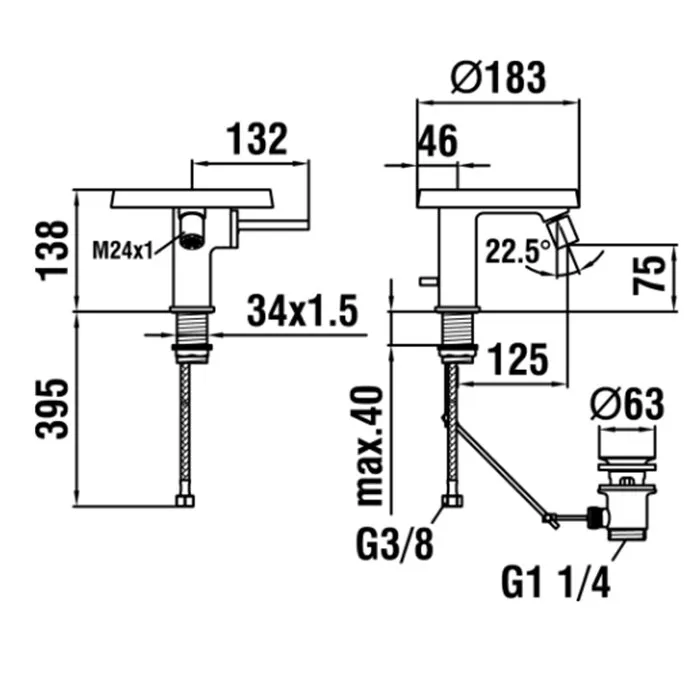 Laufen Kartell Смеситель для биде, на 1 отв, с донным клапаном, излив 125 мм, цвет: хром