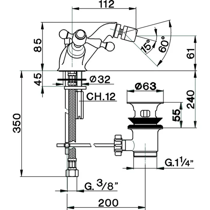 Смеситель для биде Cisal Arcana America двухвентильный, на 1 отверстие с донным клапаном, бронза AA00055027