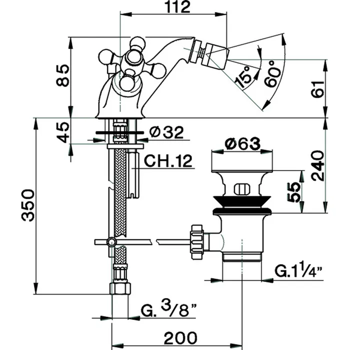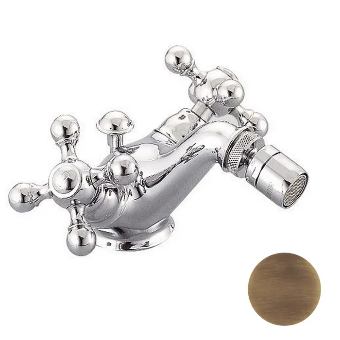 Смеситель для биде Cisal Arcana Ceramic двухвентильный, на 1 отверстие с донным клапаном, бронза AC00055027