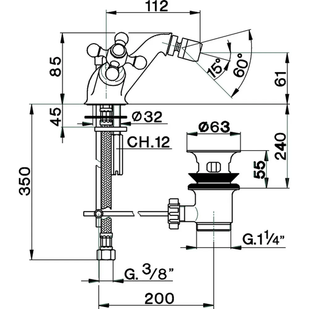 Смеситель для биде Cisal Arcana Ceramic двухвентильный, на 1 отверстие с донным клапаном, хром AC00055021 Акция