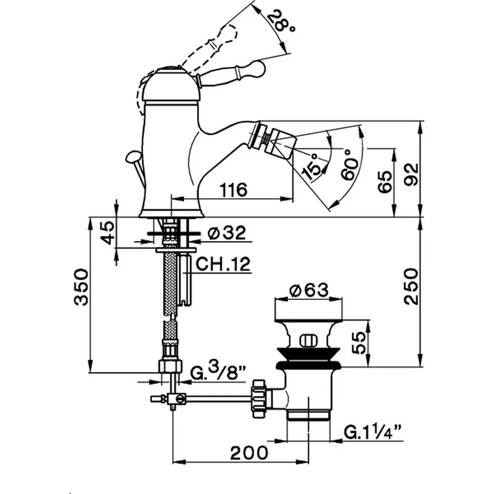 Смеситель для биде Cisal Arcana Royal однорычажный, на 1 отверстие с донным клапаном, золото AY00055024 Акция