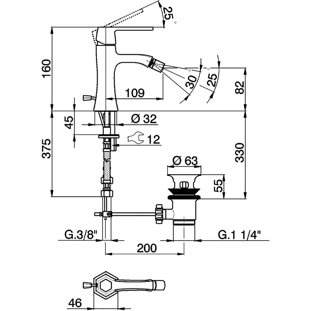 Смеситель для биде Cisal Cherie однорычажный, на 1 отверстие с донным клапаном, золото/черный матовый CH0005547C