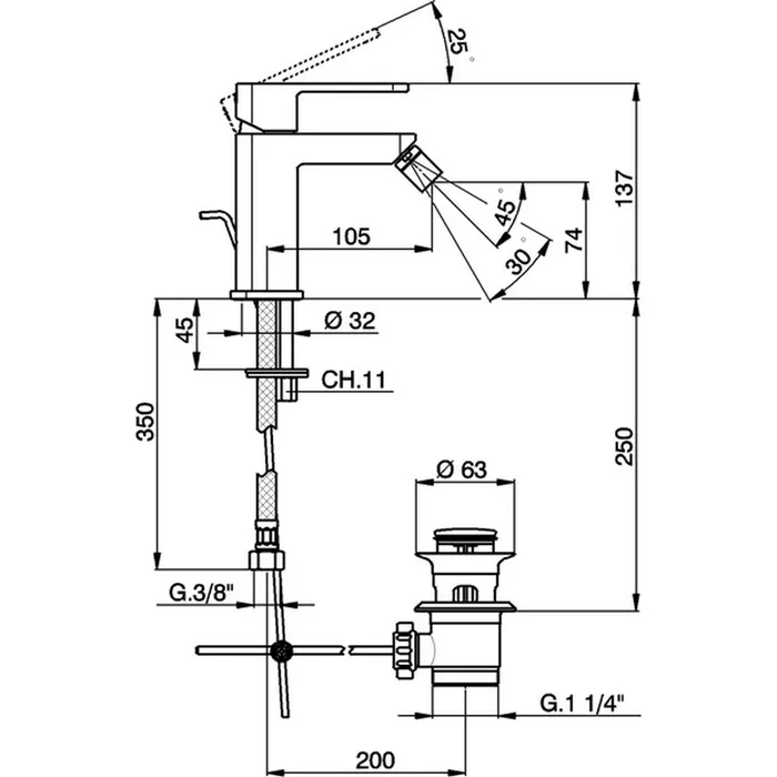 Смеситель однорычажный для биде на 1 отверстие с донным клапаном, цвет хром