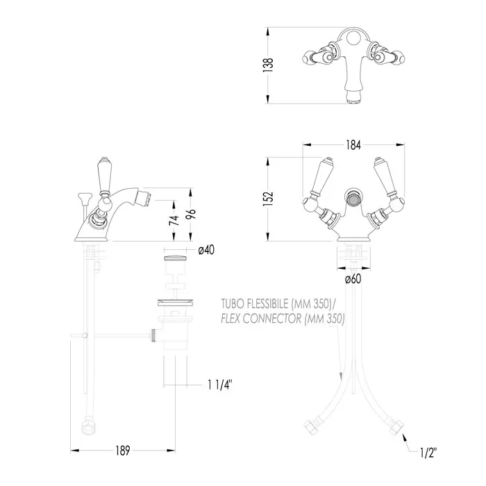 Смеситель для биде Devon&Devon Black Dandy на 1 отв. с донным клапаном c ручками черными никель блестящий MARF55NKSBD