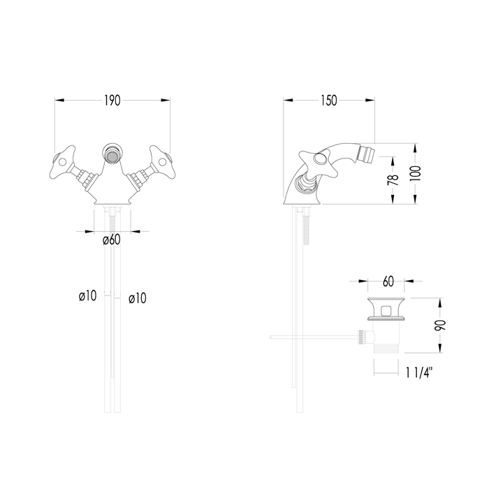 Смеситель для биде Devon&Devon White Rose на 1 отв,с донным клапаном, хром UTWR720CR