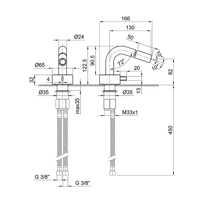Смеситель для биде Fantini Af/21 1 отв., без донного клапана, излив 130, матовая натуральная сталь 27 93 A008WF