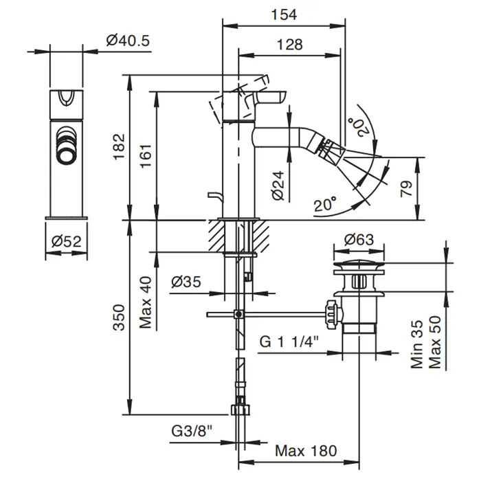 Смеситель для биде Fantini Icona Classic 1 отв., с донным клапаном, хром 53 02 R408F