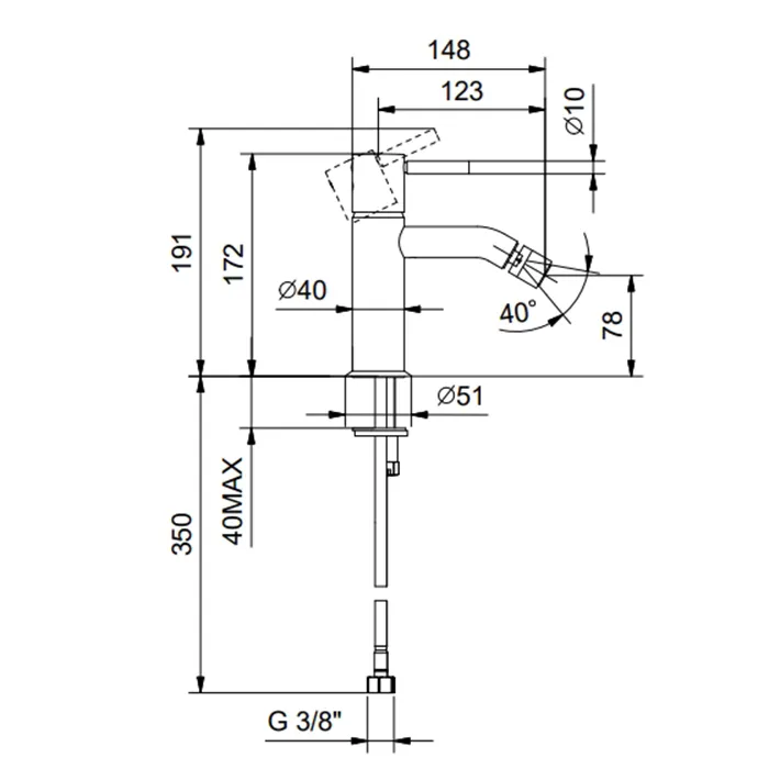 Смеситель для биде Fantini Nostromo на 1 отверстие, однорычажный, без донного клапана, черный матовый 50 13 E808WF