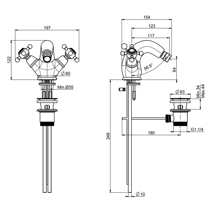 Смеситель для биде Fima Carlo Frattini Elizabeth на 1 отверстие, с донным клапаном, бронза F5092/2BR