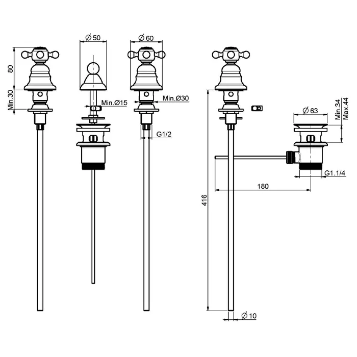 Смеситель для биде Fima Carlo Frattini Elizabeth на 3 отверстия, без излива, с донным клапаном, бронза F5102BR