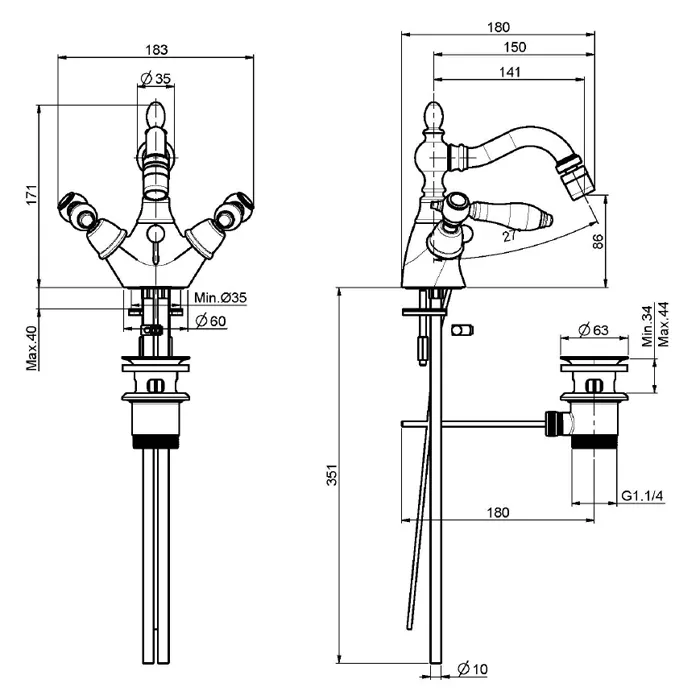 Смеситель для биде Fima Carlo Frattini Herend на 1 отверстие, с вращающимся изливом, с донным клапаном, бронза F5412BR
