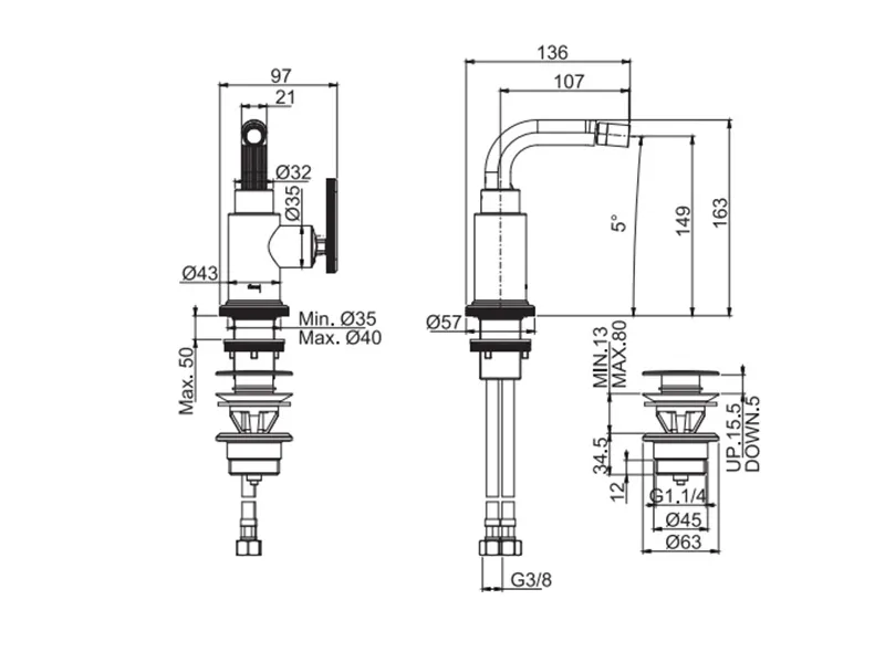 Cмеситель для биде Fima Carlo Frattini PARK LANE F1322OS с вращающимся изливом с двумя гибкими шлангами, цвет золото брашированное. Донный клапан 1"1/4 в комплекте.