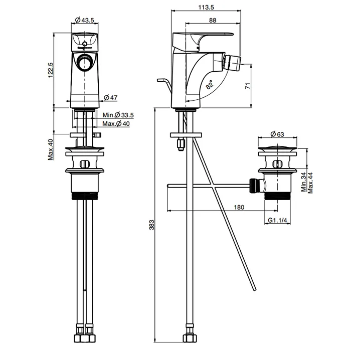 Смеситель для биде Fima Carlo Frattini Serie 22 на 1 отверстие, с донным клапаном, чёрный матовый F3832NS.1