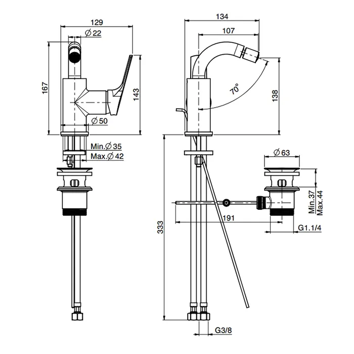 Смеситель для биде Fima Carlo Frattini Serie 4 на 1 отверстие, с донным клапаном, хром F3782WCR.1