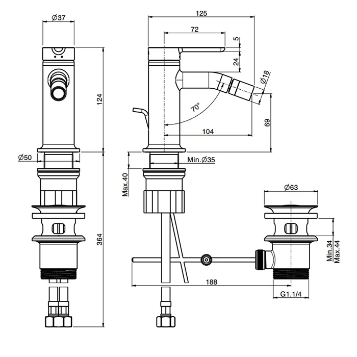 Смеситель для биде Fima Carlo Frattini Snap на 1 отверстие, с донным клапаном, чёрный матовый F3112NS.1