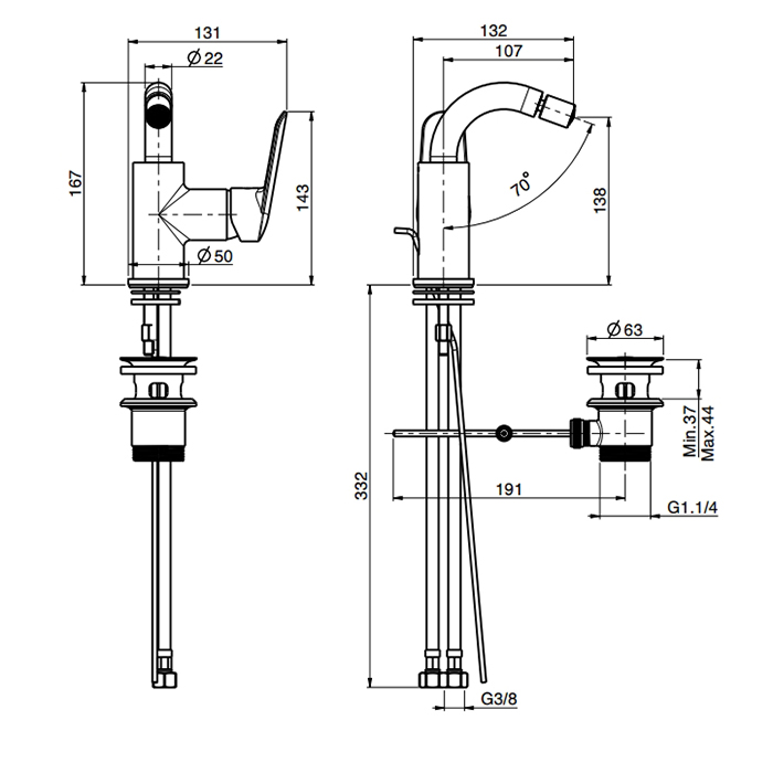 Смеситель для биде Fima Carlo Frattini Spot на 1 отверстие, с донным клапано, хром F3012CR