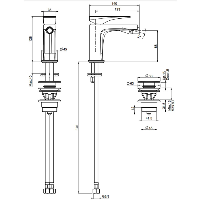 Смеситель для биде Fima Carlo Frattini Zeta на 1 отверстие, с донным клапаном, чёрный матовый F3962NNS.1
