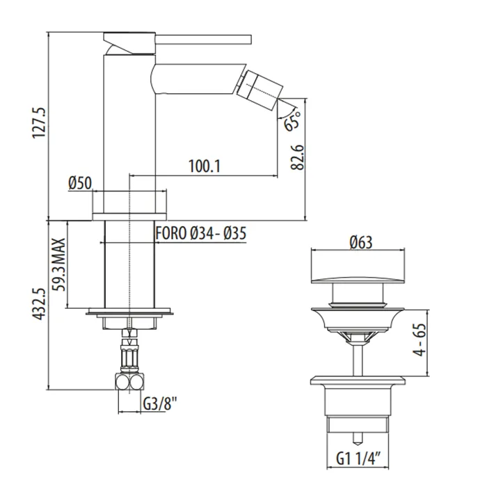 Смеситель для биде Gattoni Circle One на 1 отверстие, излив 100, с донным клапаном, bianco opaco 9050/90BO