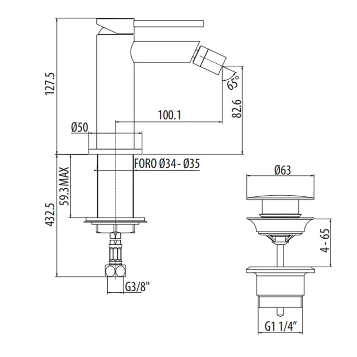 Смеситель для биде Gattoni Circle One на 1 отверстие, излив 100, с донным клапаном, хром 9050/90C0