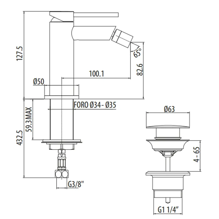 Смеситель для биде Gattoni Circle Two на 1 отверстие, с донным клапаном, хром 9150/91C0