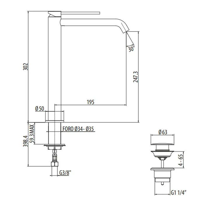 Смеситель для биде Gattoni Circle Two на 1 отверстие, с донным клапаном, nero opaco 9150/91NO