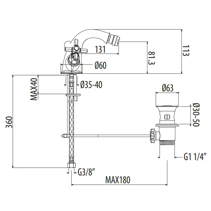 Смеситель для биде Gattoni Trd на 1 отверстие, ручки Paris, высота излива 81,3, с донным клапаном, золото 24к TR370/18D0