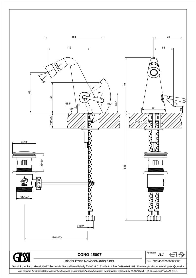 Смеситель для биде Gessi 45007.030 Copper PVD